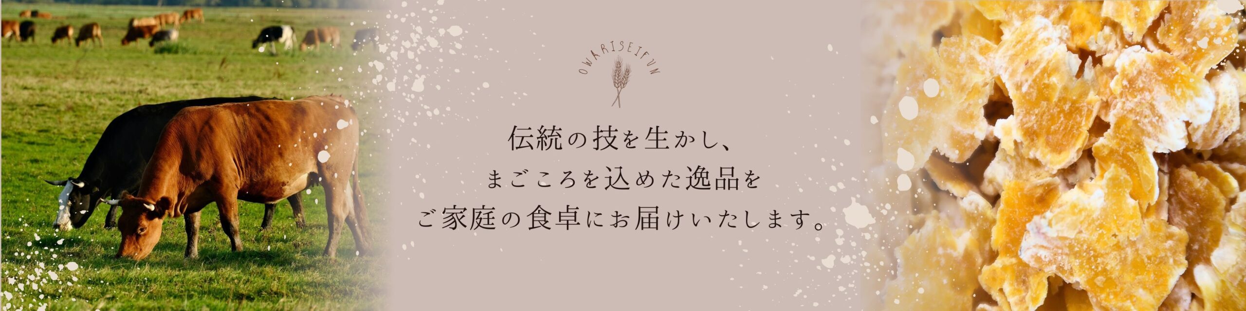 伝統の技を生かし、 まごころを込めた逸品をご家庭の食卓にお届けいたします。 皆様の食卓に「おいしさ」と「便利さ」をお届けするために、社員一同で製品の開発に取り組んでいます。 尾張製粉が乾麺の中で特にこだわっているのが手延べ麺です。 小麦本来の特性と風味を存分にお楽しみ頂けます。また、家庭用乾麺から業務用乾麺まで、お客様のニーズに合わせて多種多様な商品を企画・開発しております。 商品ができるまで 最近の投稿 2025年度新入社員入社式 2025年4月 健康経営優良法人2025認定 2025年3月 年間休日のご連絡 2024年2月 昭和60年頃放送のテレビCM 2023年4月 吸収合併のお知らせ 2023年4月 さまざまな食品の原料となる「小麦粉」をお客様のご要望に合わせ製造しています。 こだわりの手延麺を中心に、機械麺や信州そばなど、製粉メーカーならではの製法で業務用から一般家庭用まで幅広く製造しています。 麦茶のほか、煎小麦・大麦こうせんなどの醸造原料(醤油・味噌の原料)を製造しています。 製粉過程で二次的に生成されるふすま(小麦の皮)や、とうもろこし、大麦、マイロ等を加工し、栄養価のある飼料を製造しています。 owariseifun 尾張製粉公式Instagramアカウントです。 小麦粉、乾麺、麦茶を販売しています✨ 新商品情報、アレンジレシピなどを随時ご紹介❣ ハイライトから通販サイトにアクセスできます☺ Food manufacture in Aichi(Japan). 【新商品情報】 抹茶 愛知で生まれた 【新商品情報】 抹茶 愛知で生まれた 愛知県産小麦粉(強力粉)のパン材料セ 「煮出し専用丸粒麦茶」 これからの さらに読み込む Instagram でフォロー 名城食品株式会社焼そば、ラーメン、うどん等、生麺類(チルド食品)の製造販売会社です。大和食品工業株式会社家庭用・業務用のスープ、ソース等、各種調味料の製造メーカーです。セントラル製粉株式会社名古屋港に位置する製粉会社尾張製粉ブランドの小麦粉を製造しています。 半田市役所http://www.city.handa.lg.jp/ 半田商工会議所http://www.handa-cci.or.jp/ 半田市観光協会http://handa-kankou.com/