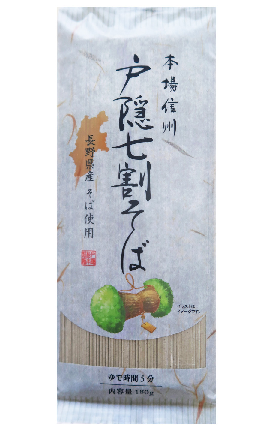 そばの本場、長野県戸隠地区で製造。長野県産そば粉を使用し、風味豊かで口当たりのよいそばです。原材料に食塩を使用していないため、そば湯もおいしく召し上げれます。